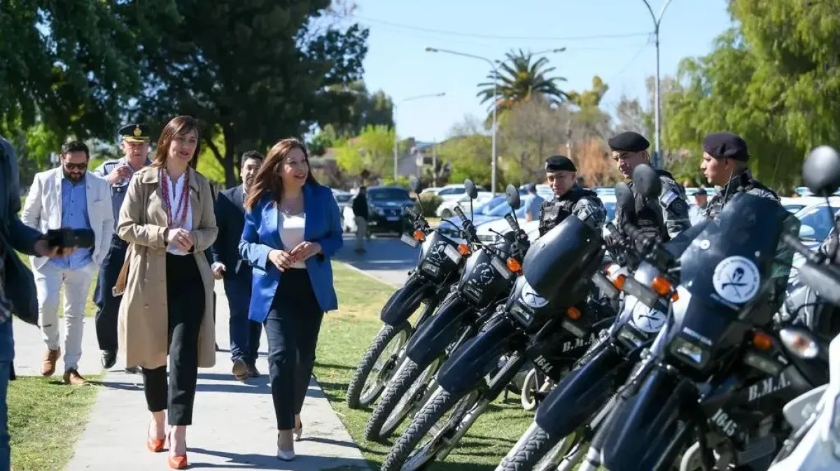 La gobernadora Arabela Carreras dijo que "después de dos años de pandemia comenzamos con un gran esfuerzo, y en estos dos últimos años 2022 y 2023, pudimos concretar distintas entregas que totalizan aproximadamente 100 vehículos entre camionetas y autos, y alrededor de 100 motos que nos permiten reforzar la seguridad en zonas rurales, equipamiento de tecnología, drones, alcoholímetros compartiendo el esfuerzo con Nación y parte también del equipo provincial".