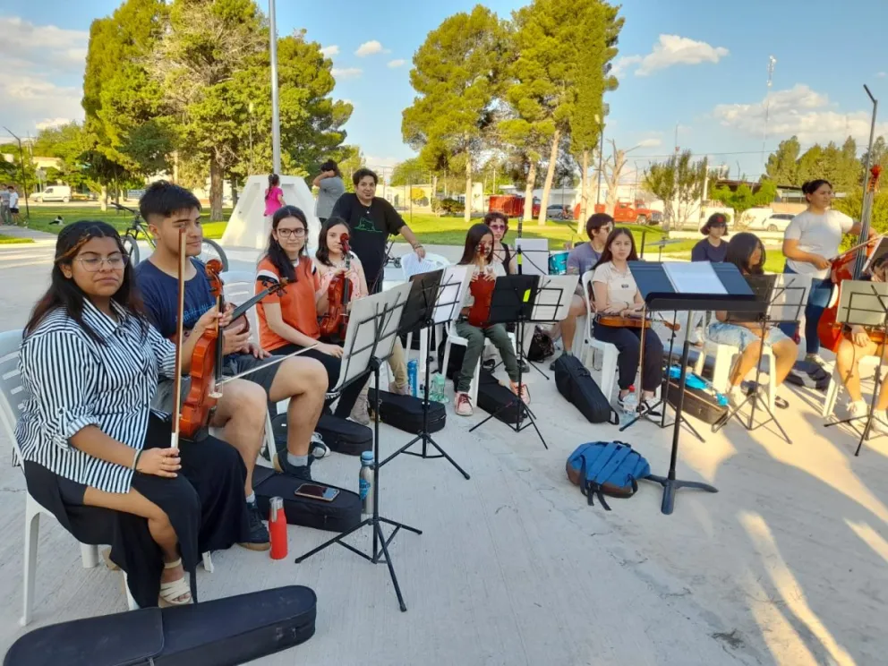 En la plaza central, artesanos, emprendedores y feriantes esperaban la llegada de los asistentes con sus puestos. La Orquesta del Bicentenario de Choele Choel deleitó a los presentes con su música, especialmente a las madres.
