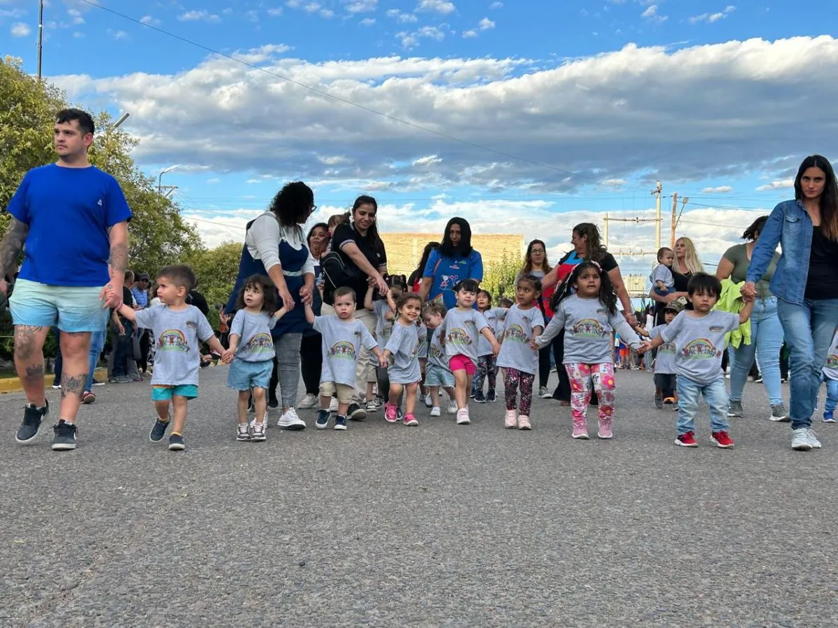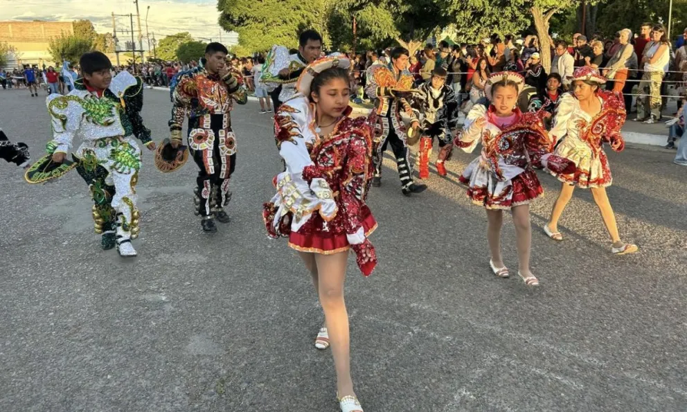 Un desfile colorido hizo juego con la alegría de vecinos que celebraron el aniversario de la localidad.