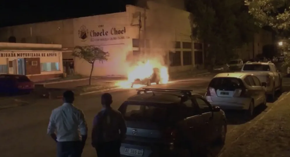 El dueño del vehículo Siena había estacionado en el lugar para asistir a una fiesta de egresados que se desarrollaba en el Gimnasio Municipal. Minutos después comenzó el fuego.