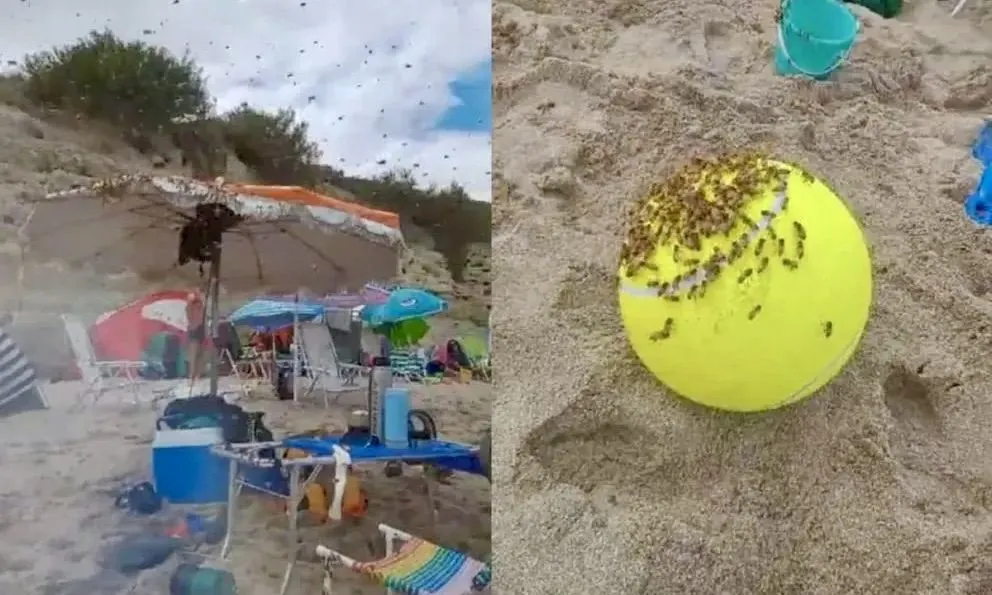 Increíble: un enjambre de abejas invadió sombrillas en Las Grutas