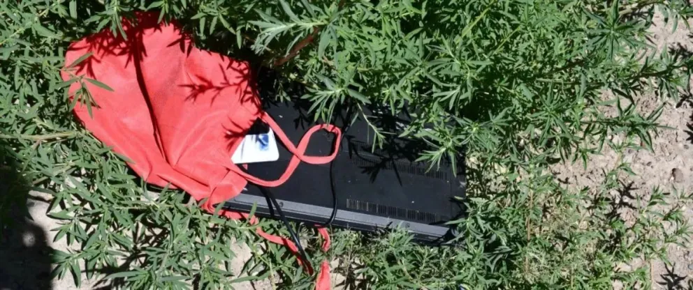 Al encontrarse con el móvil policial, el sujeto se sorprendió y arrojó una bolsa de tela roja que llevaba consigo, para luego emprender la huida. Sin embargo, fue interceptado por la policía en calle Colón. En la bolsa se encontraron dos teléfonos celulares y una Notebook con su cargador. La fiscalía dispuso la imputación por "encubrimiento" y el sujeto sigue detenido.