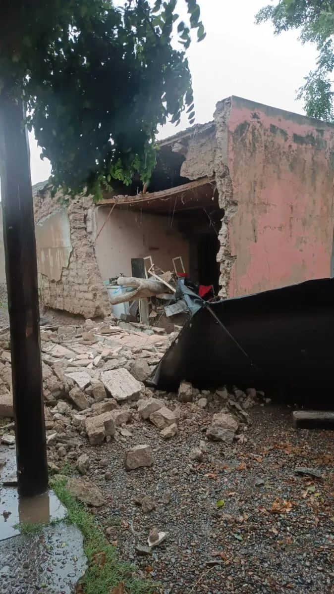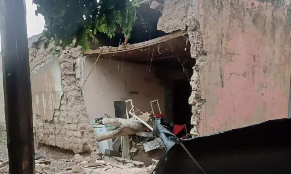 Uno de los barrios más afectados es el Barrio Unión, donde el personal de obras públicas se encuentra trabajando para atender un derrumbe de una vivienda.