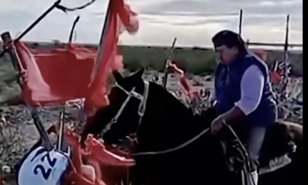 Ángel cumplió la promesa y cabalgó desde Lamarque hasta Regina. (Imagen de video Canal 10)