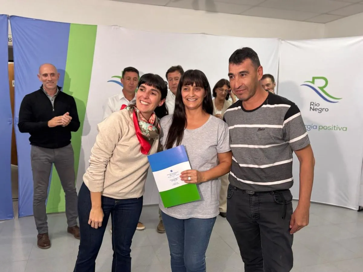 Uno de los momentos más emotivos de la jornada fue la entrega de escrituras a vecinos y vecinas de Choele Choel, quienes accedieron a la titularidad de sus viviendas a través del Instituto de Planificación y Promoción de la Vivienda (IPPV).