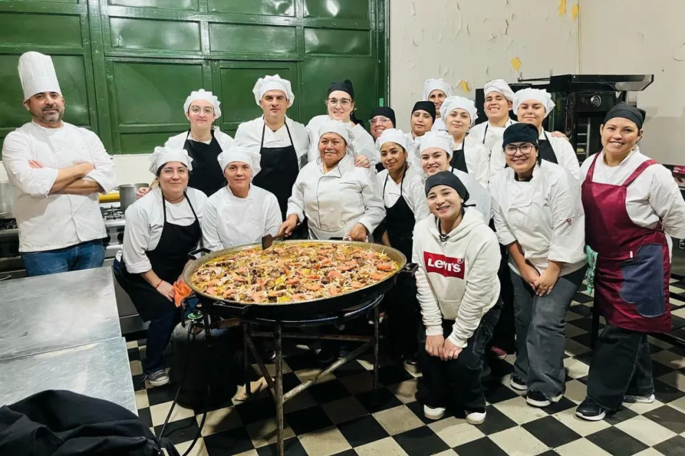 La velada fue un verdadero éxito, con más de 40 comensales disfrutando de una cuidada muestra de la cocina española. En esta oportunidad, el menú incluyó platos típicos como la tradicional paella, una variada selección de tapas y la exquisita crema catalana como broche final. Cada preparación fue realizada con esmero y dedicación por los jóvenes estudiantes, quienes no solo desplegaron su talento culinario, sino también un destacado compromiso profesional.