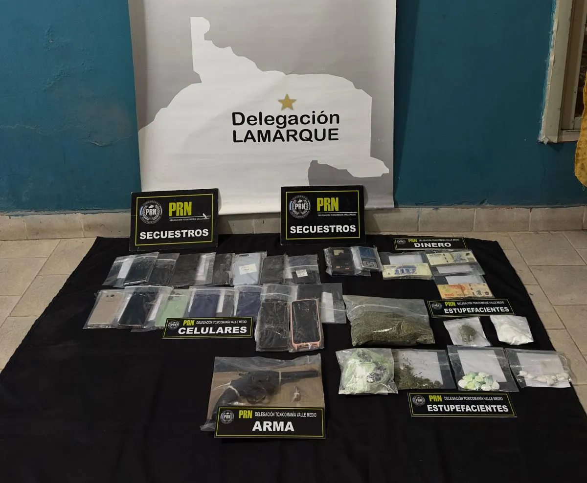 La Delegación de Lamarque de la Policía de Río Negro llevó a cabo importantes allanamientos en Coronel Belisle y Chimpay, en el marco de una investigación por presunta comercialización de estupefacientes. Como resultado de los procedimientos, se secuestró cocaína, marihuana, dinero en efectivo, teléfonos celulares, una balanza de precisión y un arma de fuego.