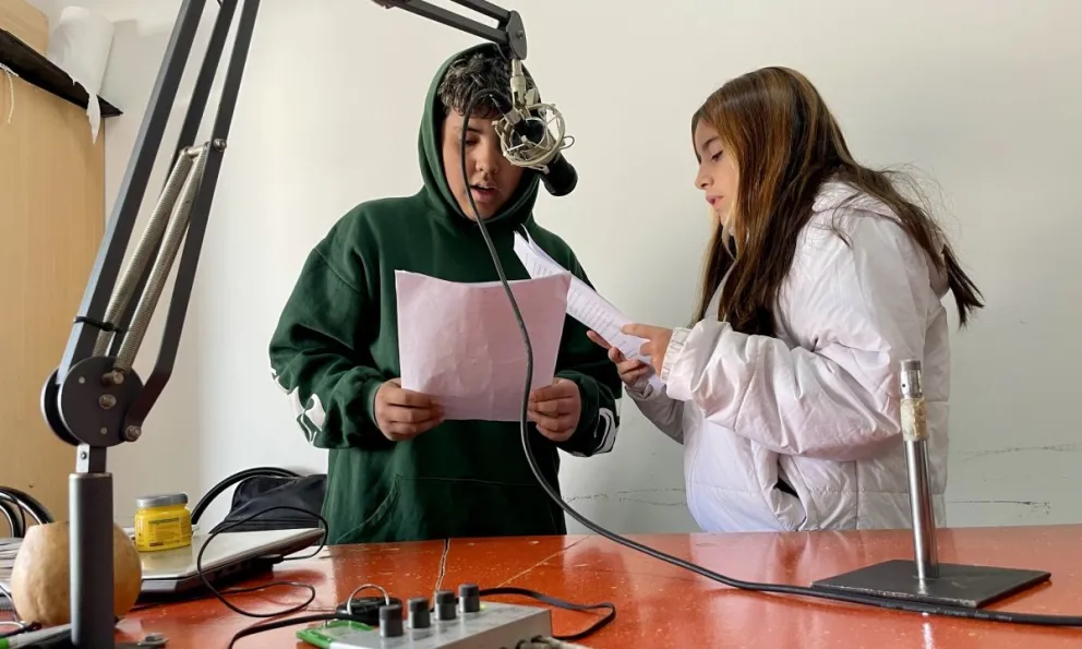En una pequeña aula de la Escuela Primaria Nº 59, en Chimpay, cada viernes sucede un milagro. No es uno de esos que hacen temblar los cielos, sino uno más íntimo, más verdadero: niños de primero a séptimo grado se sientan frente a un micrófono, respiran hondo, y hacen radio.