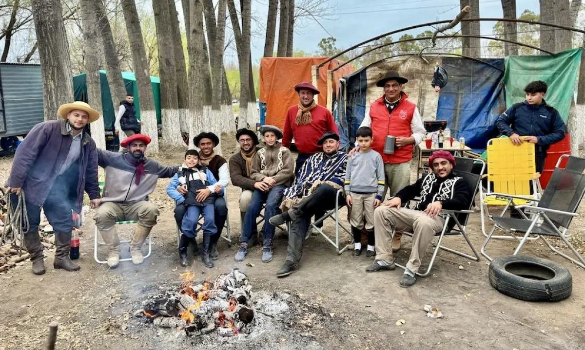 Muy cerca del fogón pasó Gaspar, oriundo de Lamarque, y se detuvo unos segundos. Es la primera vez que vive la experiencia. Planea quedarse hasta el domingo, si los días acompañan, mientras mira el cielo buscando alguna certeza.