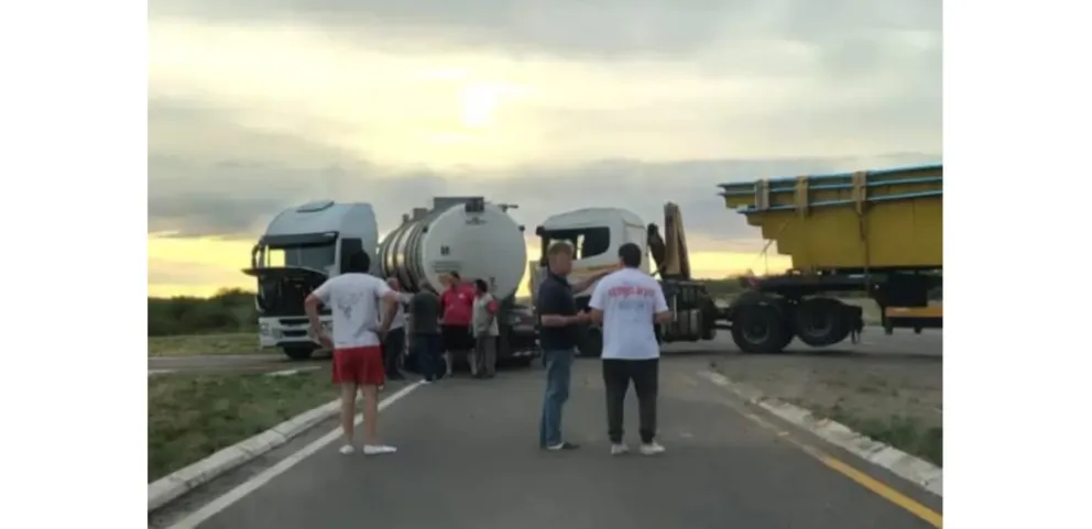 El golpe provocó que el primero de los camiones hiciera “tijera” y quedara atravesado sobre la cinta asfáltica, bloqueando completamente la RN 251 en el mismo sentido de circulación.