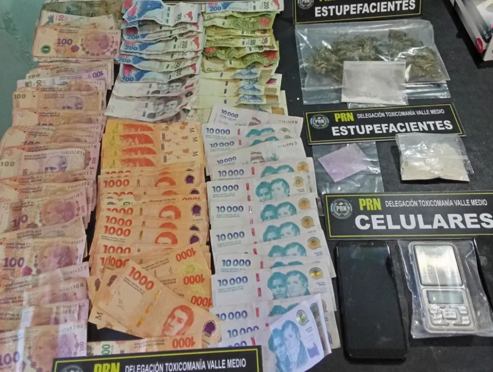 En el marco de las diligencias realizadas, se procedió a secuestrar: Clorhidrato de cocaína fraccionada, Cannabis Sativa (Marihuana), un envoltorio de nylon conteniendo sustancia polvorienta color violeta (que será enviada a laboratorio), balanza de precisión, teléfonos celulares y dinero en efectivo.