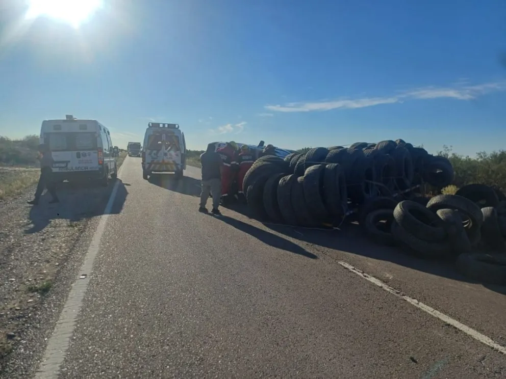 Una camioneta Toyota Hilux con su acoplado doble eje, cargado de cubiertas usadas, había salido de Chelforó en dirección a Bahía Blanca.