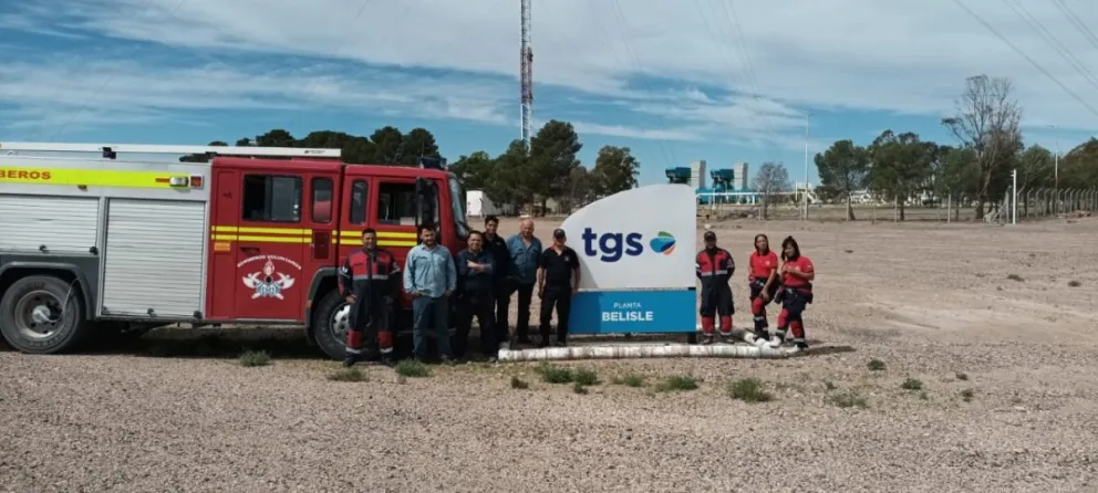 Bomberos Voluntarios de Belisle realizaron un simulacro en la planta de TGS