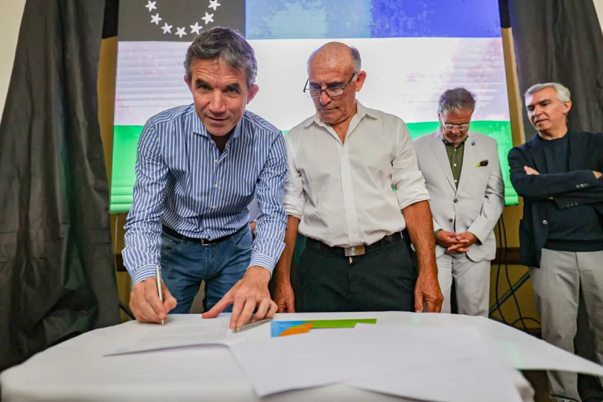El Gobernador Alberto Weretilneck y el Intendente Adrián Casadei encabezaron en San Antonio Oeste la firma del contrato para la obra de mantenimiento y operación del Canal Pomona–San Antonio Oeste, una infraestructura clave para el sistema hídrico de la región.