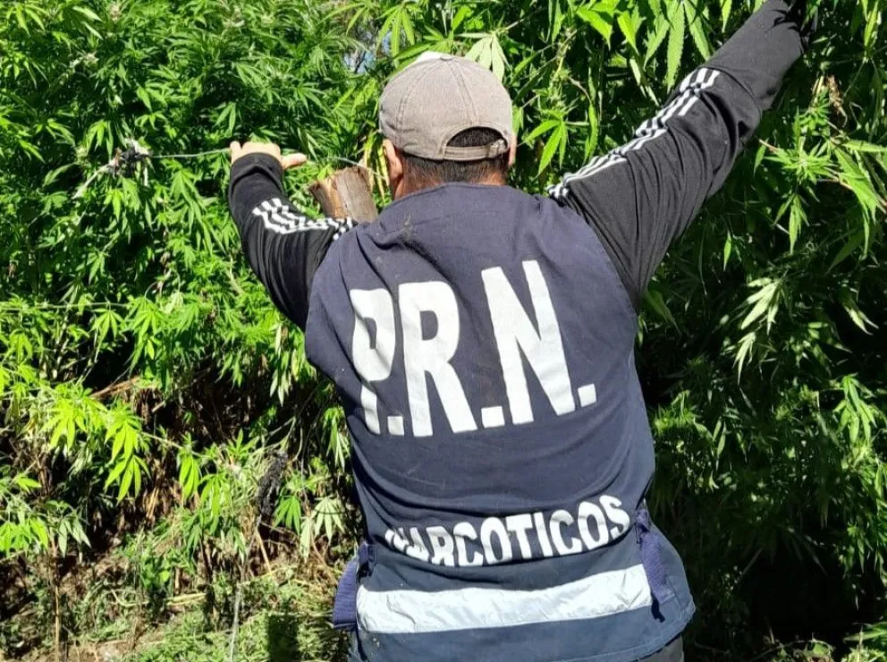 Allí, los uniformados encontraron plantas que alcanzaban casi los tres metros de altura, lo que evidencia un desarrollo prolongado y cuidado. Pero además, se identificaron tres sectores acondicionados para el secado de cogollos, donde había flores ya recolectadas, con un peso total que rondaba los 16 kilos, listas para su procesamiento.